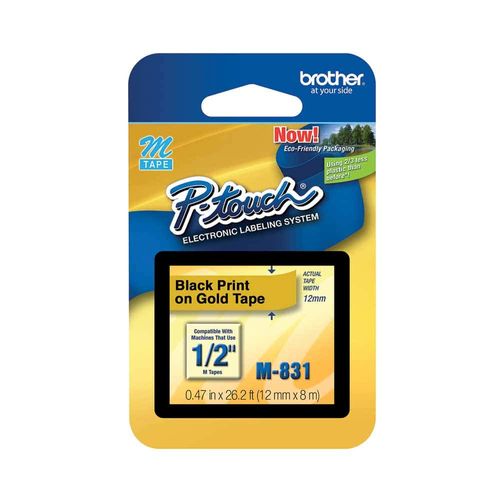 Cinta para Rotulador Negro / Oro de 12 mm x 8 mts Brother M831 / Precio $197